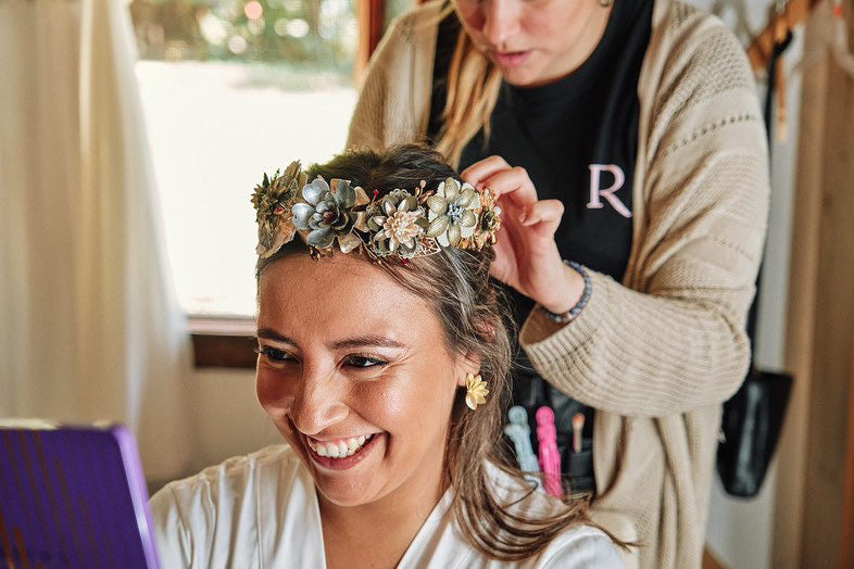 Se parte de este proceso tan maravilloso donde podrás ir eligiendo personalmente cada detalle y disfrutar la magia de armar un tocado personalizado perfecto para ti.