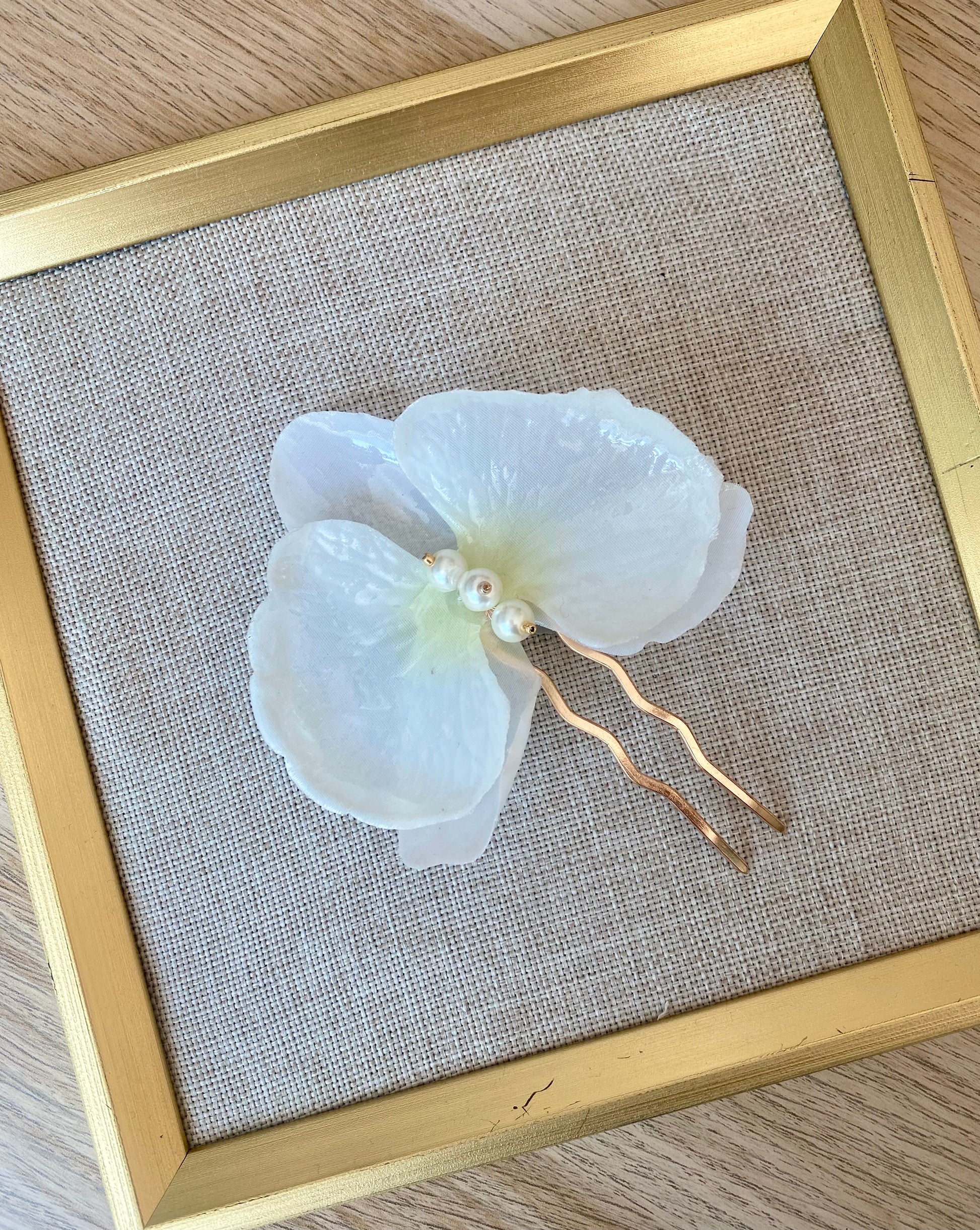 Orquidea cristalizada blanca con perlas 12 cm aprox