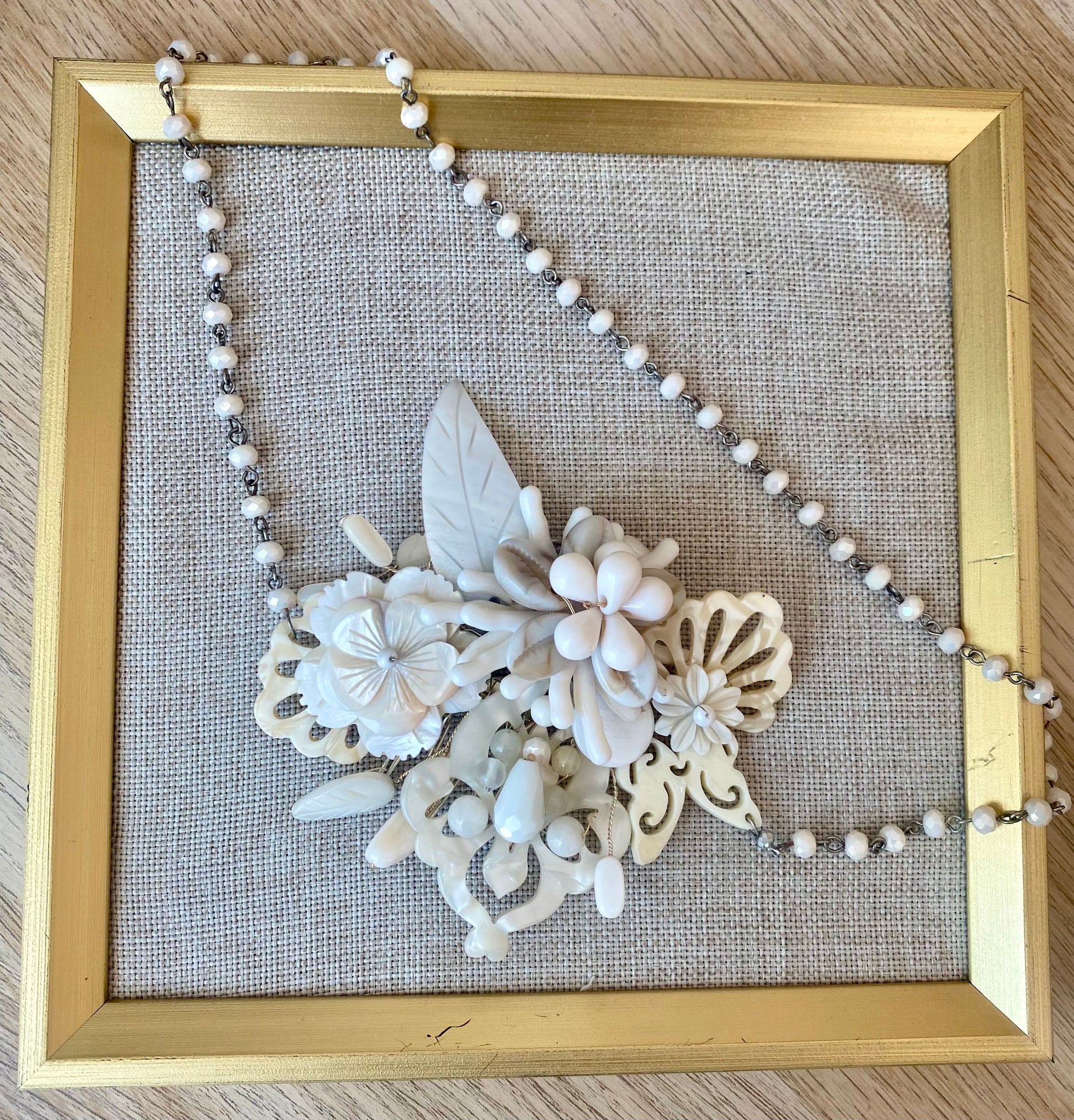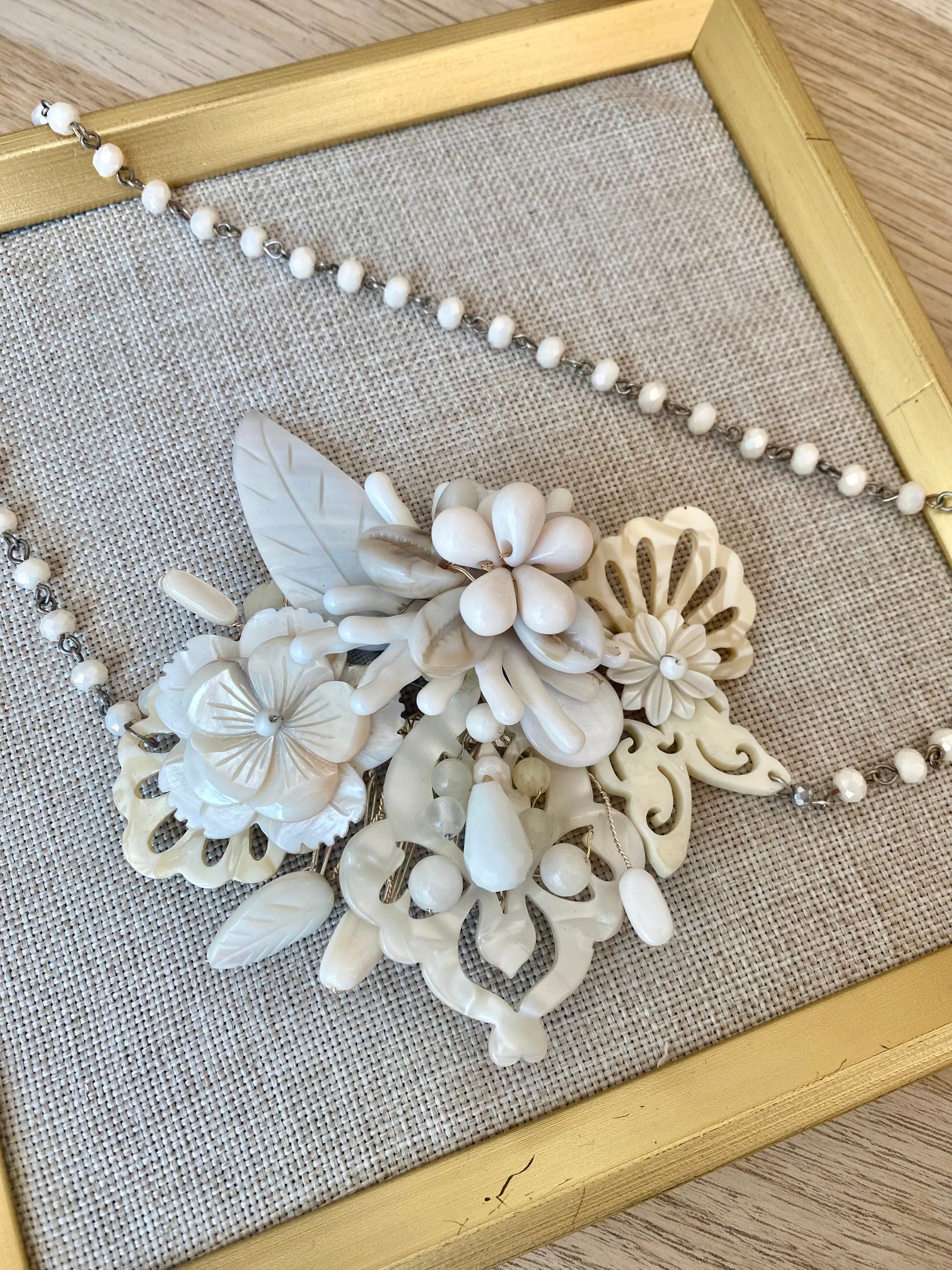 Tocado de nacar, carei y resina. Incluye contorno en cristal.